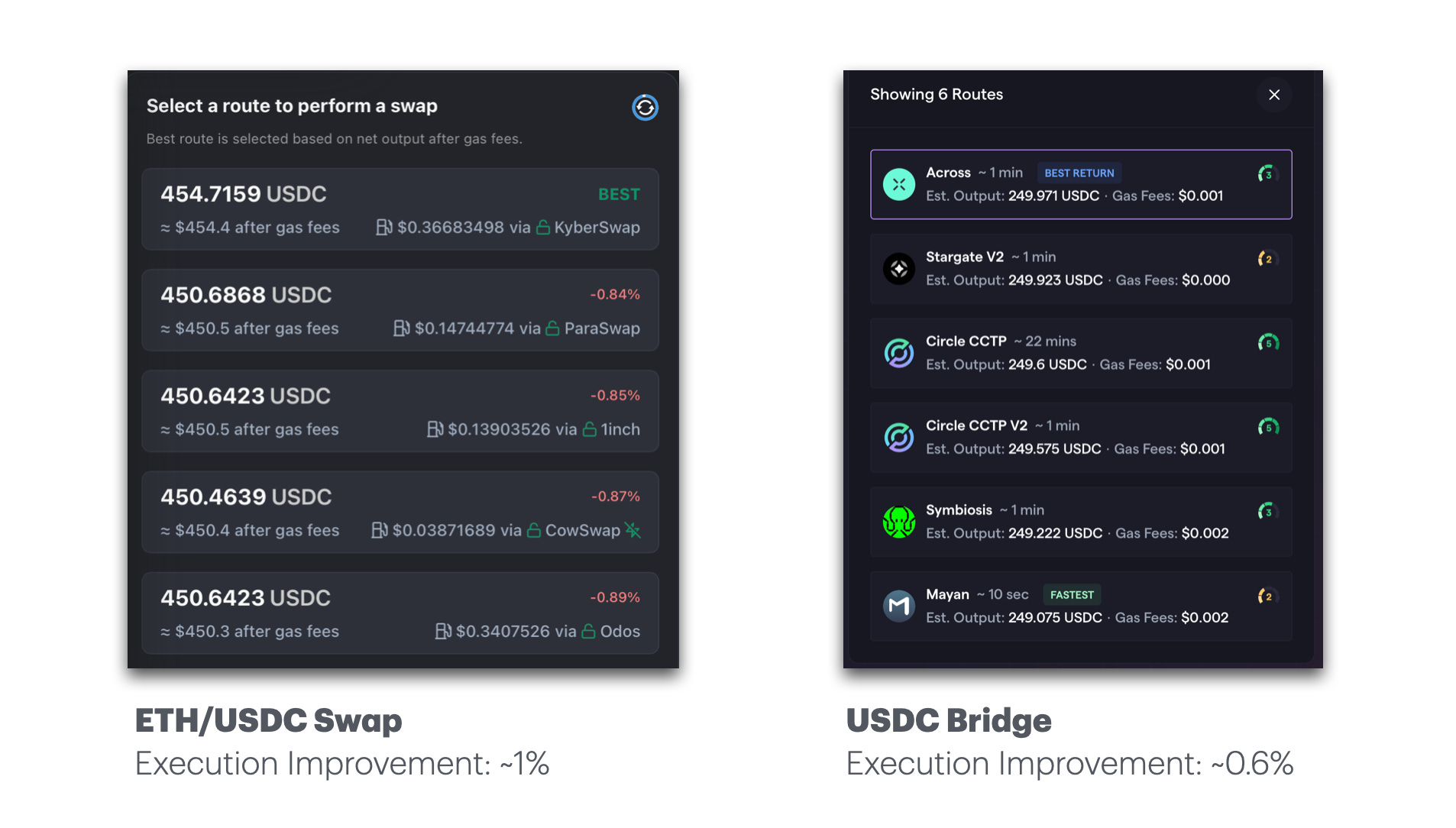 DeFi has matured enough to provide multiple liquid venues for executing just about anything. Want to trade tokens? There’s Uniswap, Aerodome and Curve. Want to bridge to another chain? There’s Circle’s CCTP, LayerZero, Wormhole and Axelar. Want a loan? There’s Aave, Morpho, Fluid and MakerDAO/Sky. Inevitably, aggregators pop up to provide best execution services.